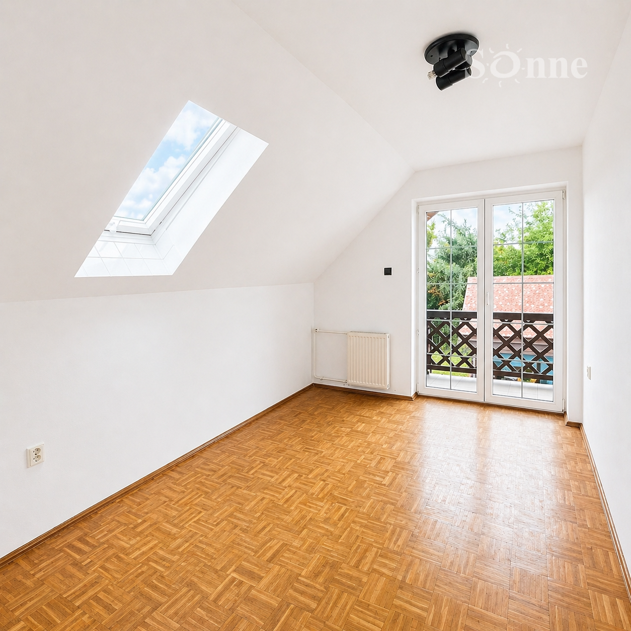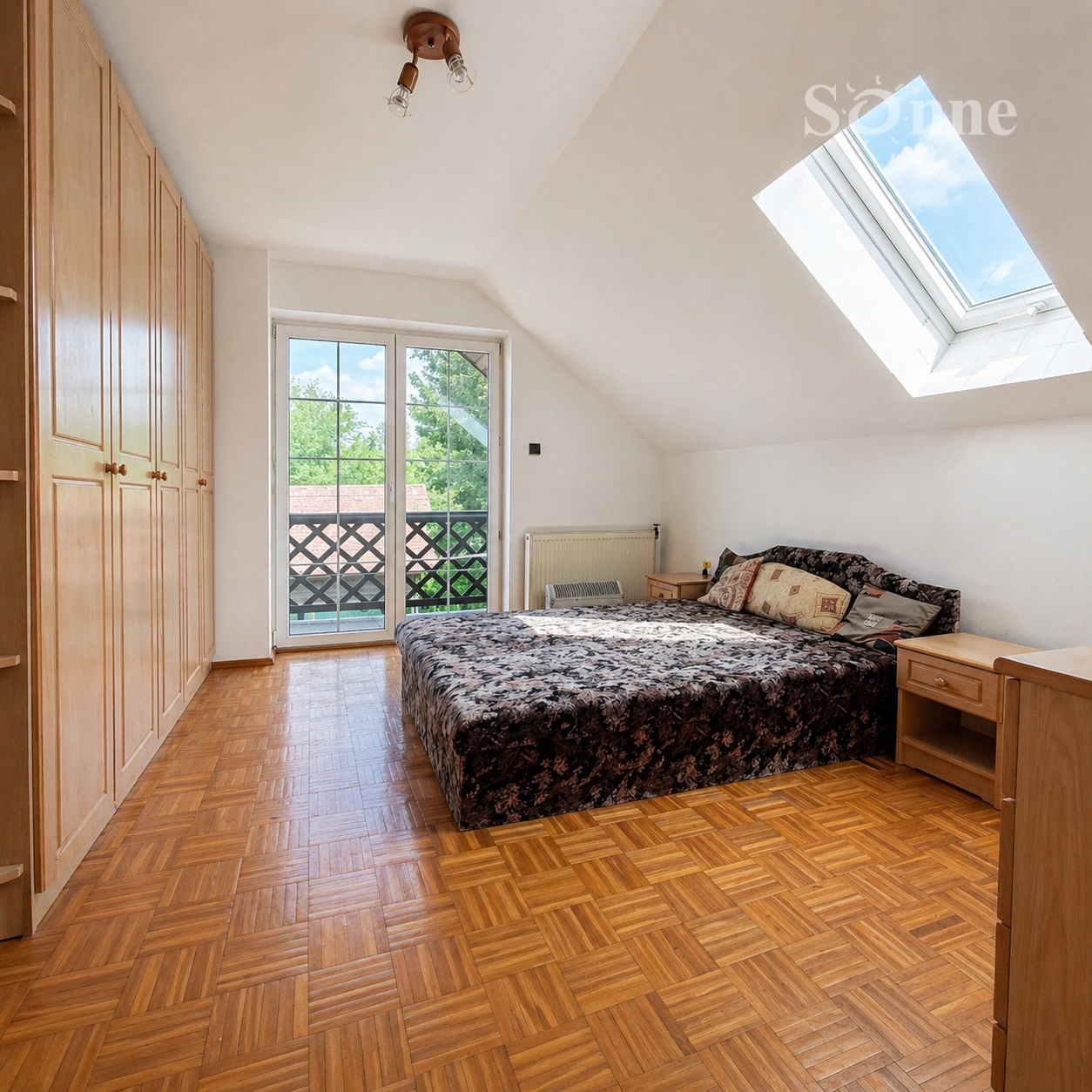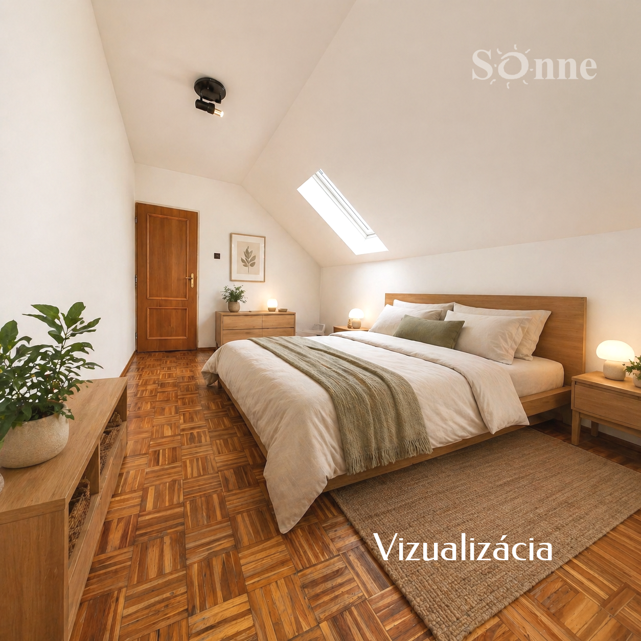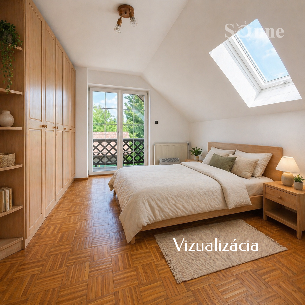 Na poschodí sa nachádzajú tri samostatné spálne s terasami/loggiami a priestranná kúpeľňa s vaňou, sprchovacím kútom a WC.